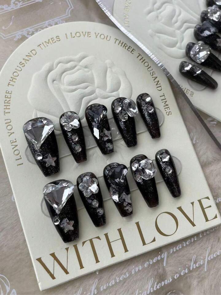 Goth 10 piezas largo ataúd 3d con diseño de flor Uña postiza & 1 hoja cinta