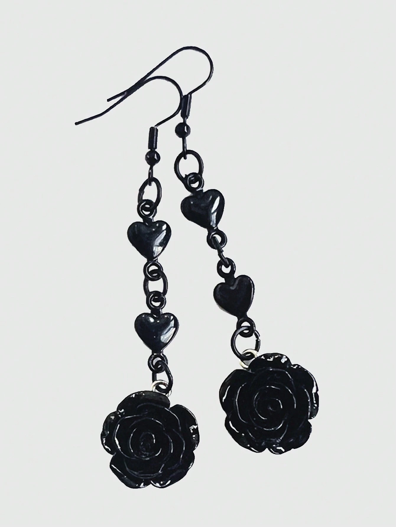 Goth 1 Par De Aretes De Gota Con Forma De Corazón Y Rosa Negra