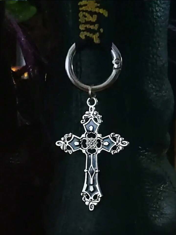 Goth 1 par de aretes colgantes con decoración de zapato en forma de cruz para el otoño