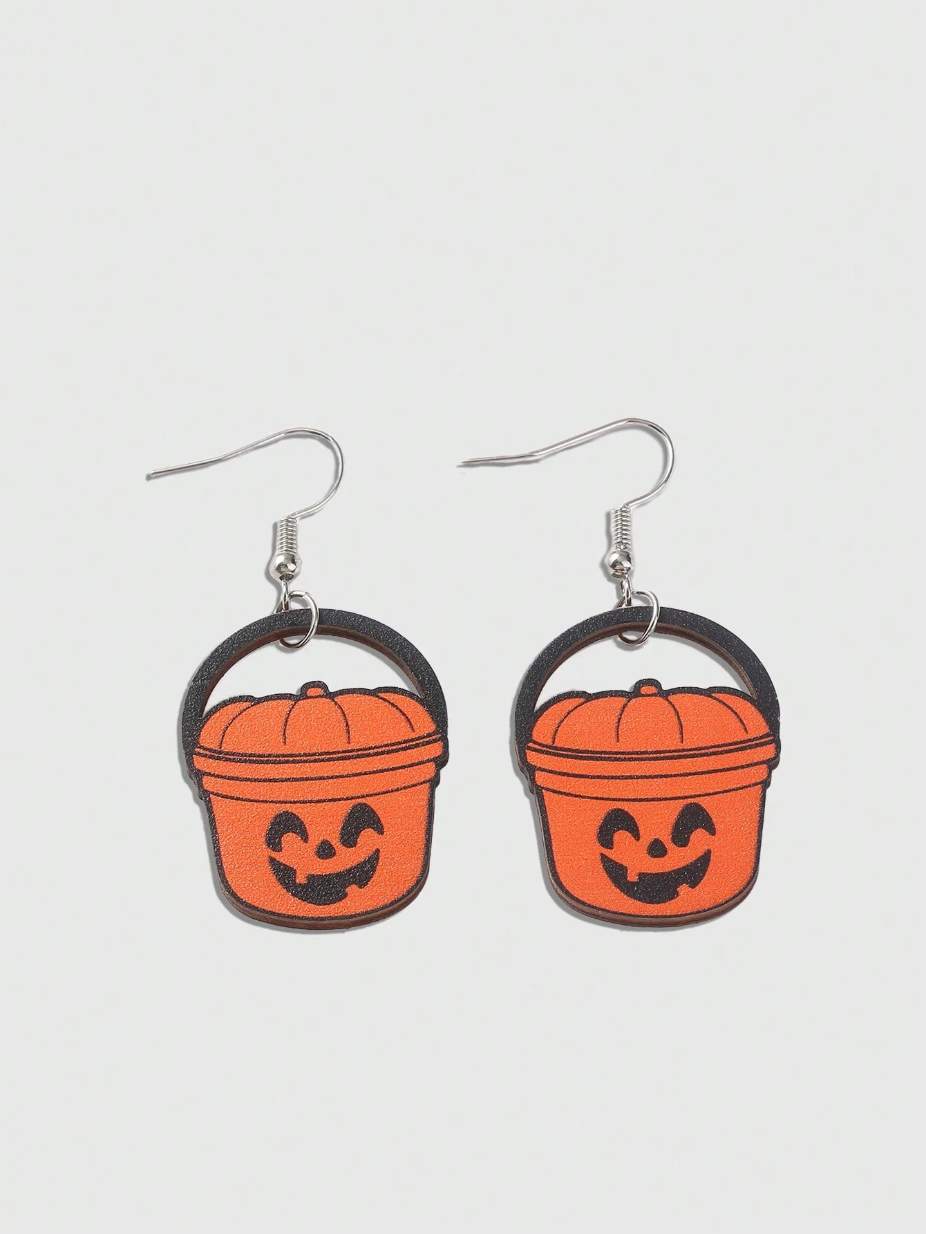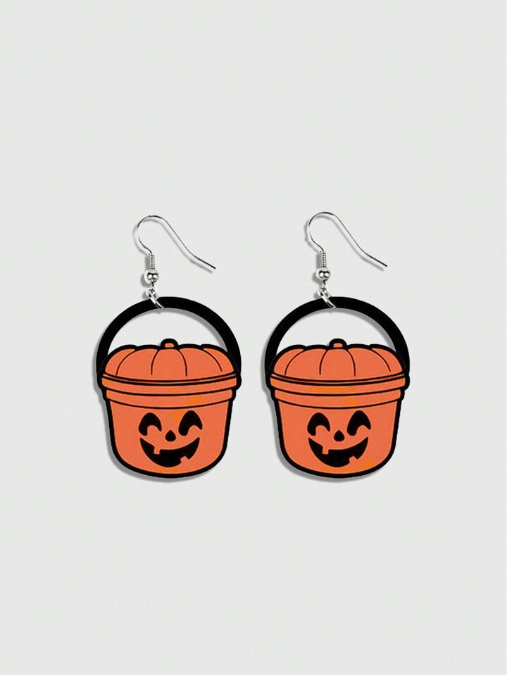 Goth 1 par Pendientes largos dulce acrílico con patrón de calabaza para mujeres para Halloween