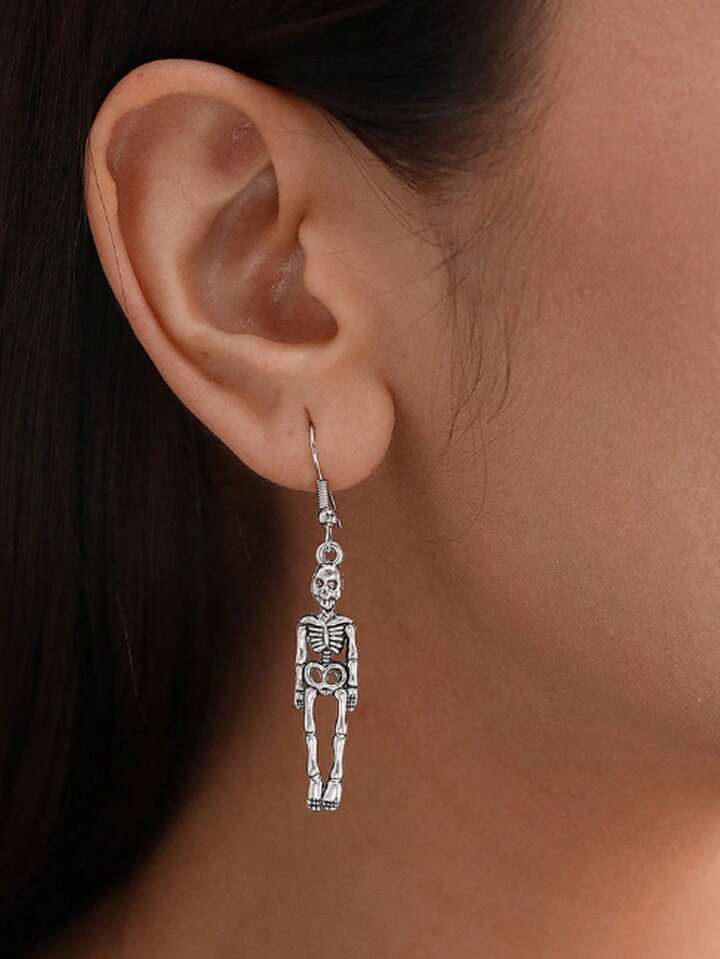 Goth 1 par Pendientes largos miedoso aleación de zinc esqueleto para mujeres para decoración diaria