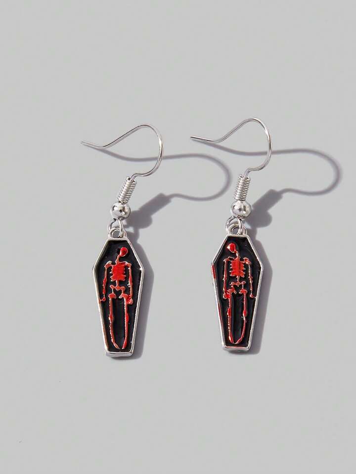 Goth 1 par Pendientes largos miedoso aleación de zinc con patrón de esqueleto para mujeres para decoración diaria