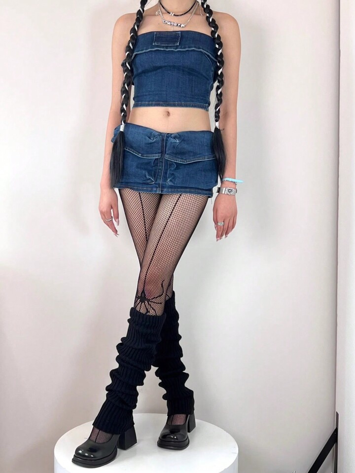 Goth 1 par Calientapiernas & 1 par con estampado de telaraña Medias de malla