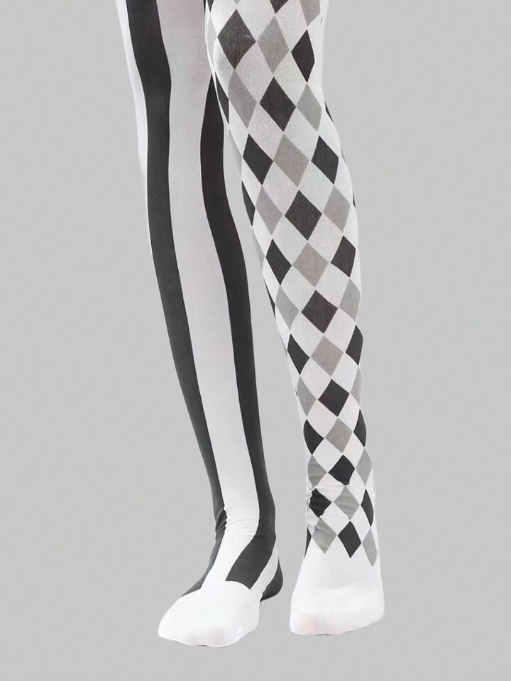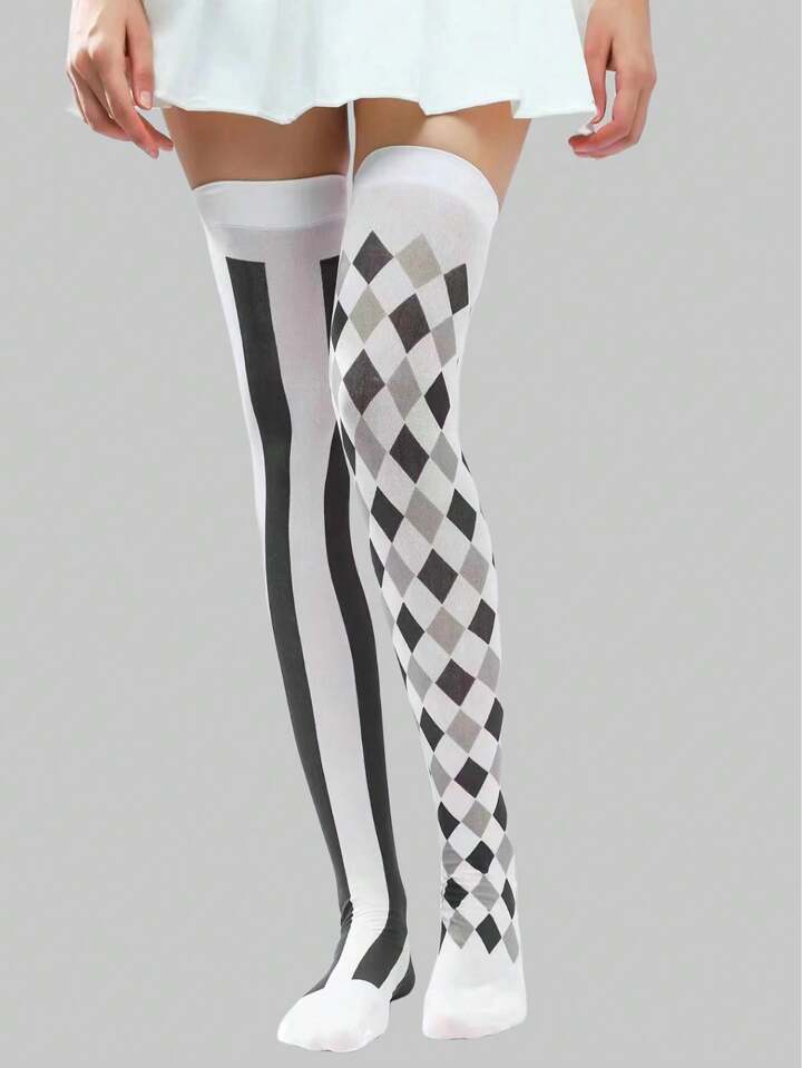 Goth 1 par Calcetines sobre rodilla con Gris oscuro en forma de diamante color bloqueo
