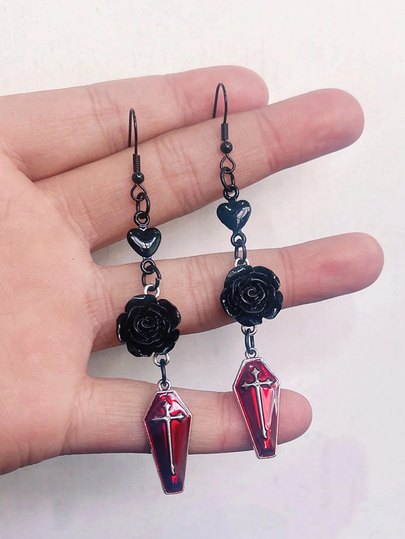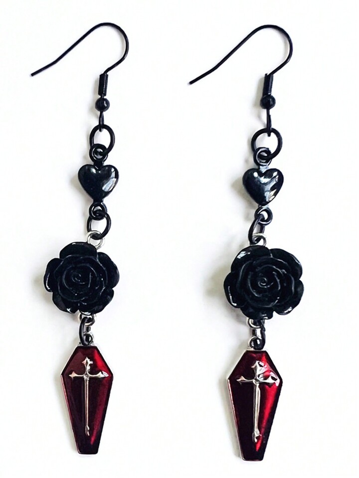 Goth 1 Par Arete Colgante En Forma De Rosa Y Ataúd