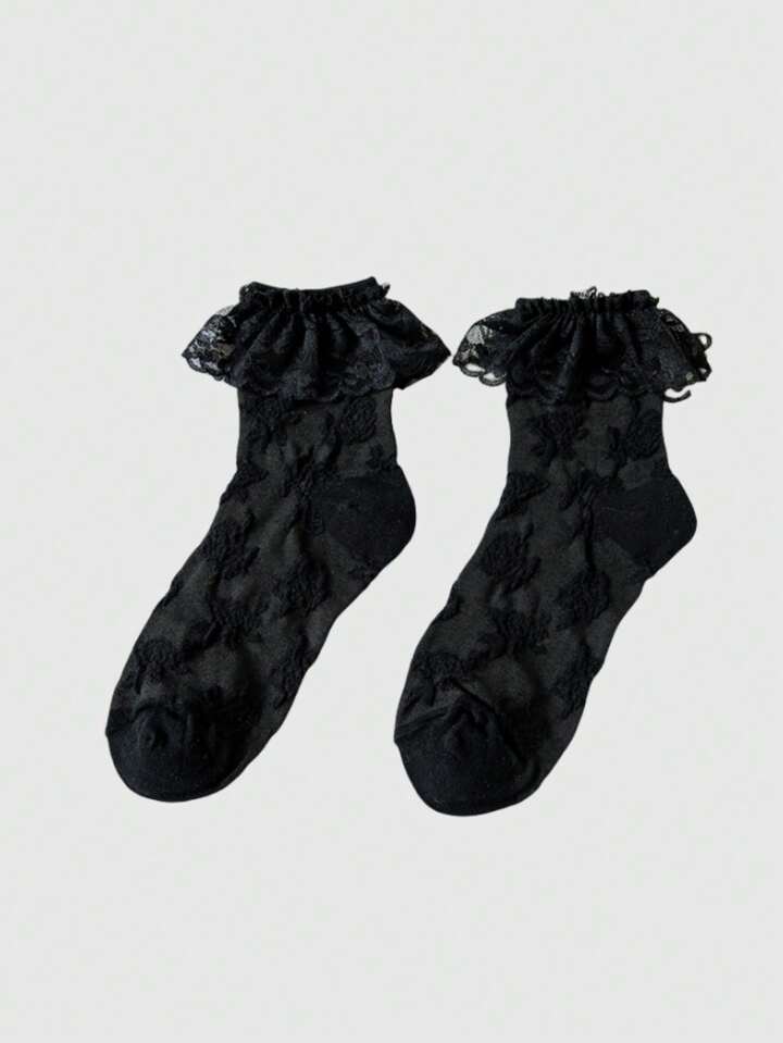 Goth 1 Par Calcetines De Encaje De Media Pantorrilla Con Flores De Rose