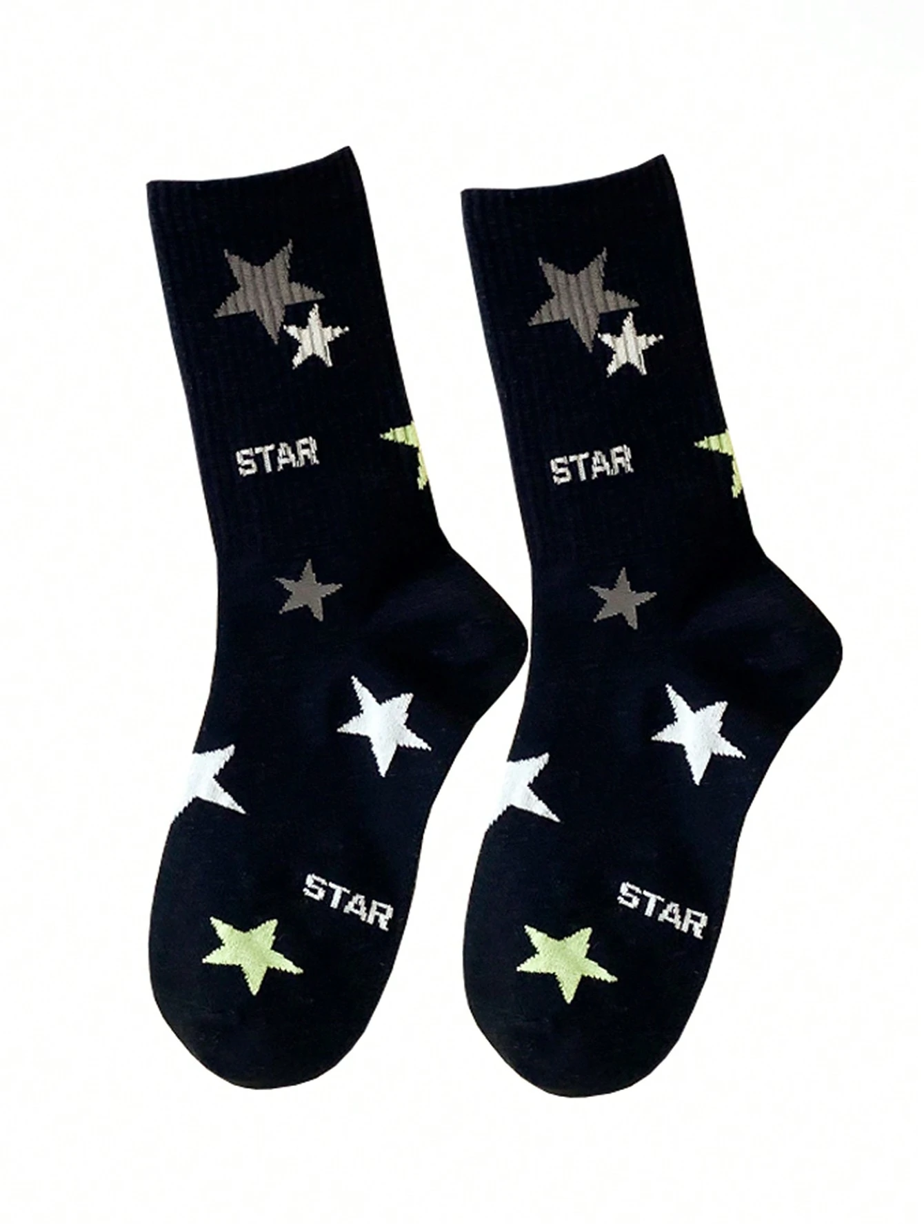 Goth 1 Par De Calcetines De Media Pantorrilla Para Mujer Con Diseño De Pentagrama