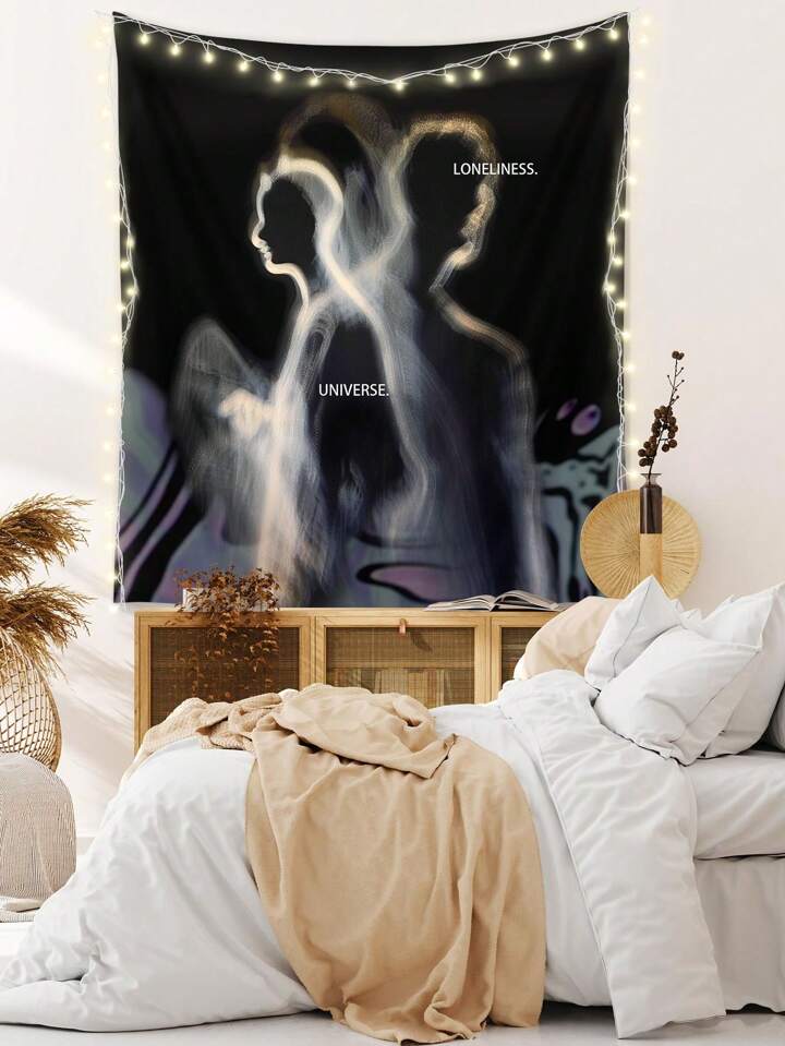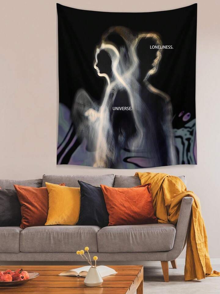Goth 1 pieza Tapiz de poliéster con patrón abstracto borroso de sombra humana luminosa, adecuado para decoración de pared de la sala de estar y el dormitorio, decoración para camping, para todas las estaciones