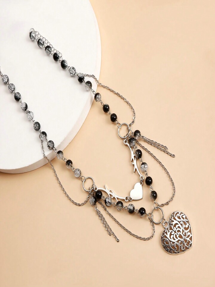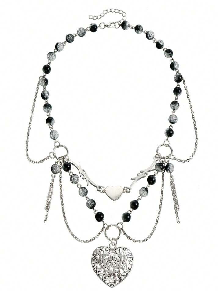 Goth 1 Pieza Collar Con Colgante De Corazón Exagerado Con Borlas Y Cuentas