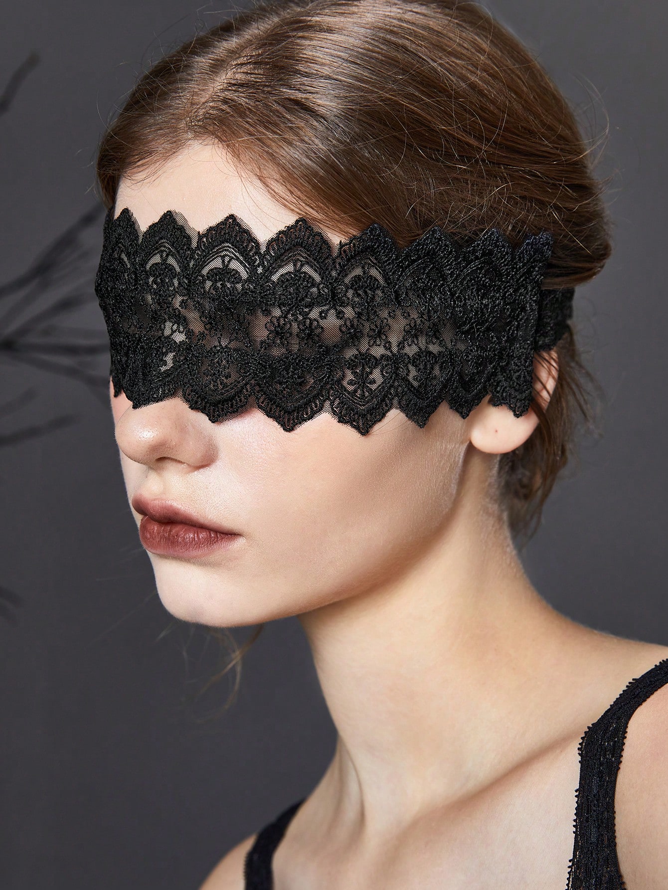 Goth 1 pieza Mascarilla para ojos negro con encaje