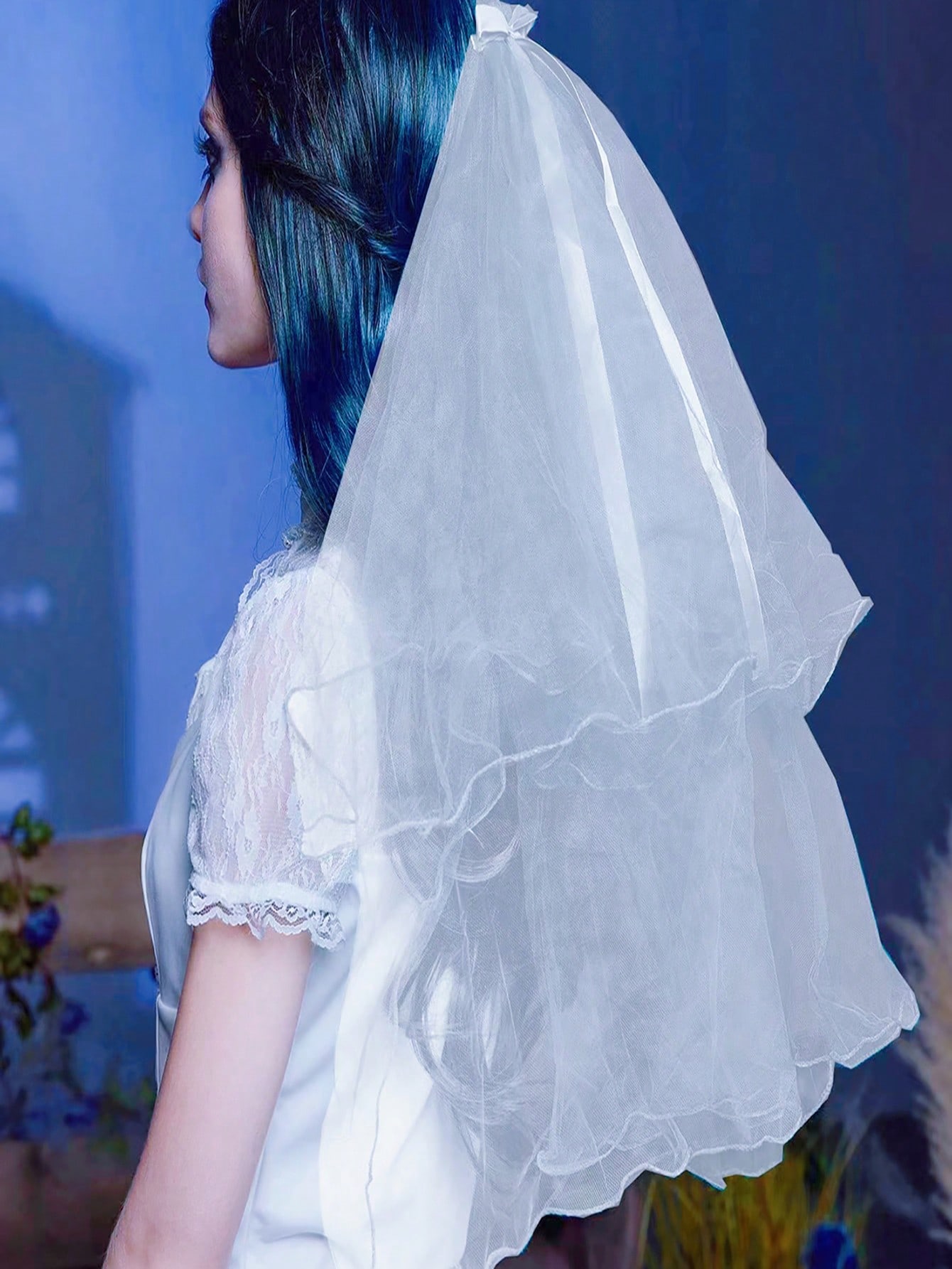 Goth 1 pieza Diadema cinta con lazo con Velo
