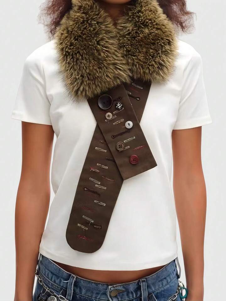 Goth 1 pieza Cinturón ajustable de diseño de parches de peluche de camello Y2K, accesorio versátil adecuado para uso diario, vacaciones y fiestas