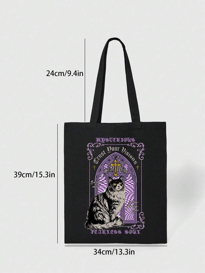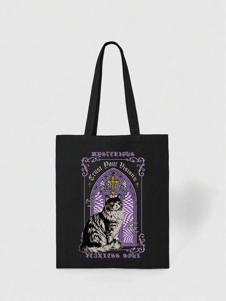 Goth 1 pieza Bolso de tela casual y versátil con estampado de gatos