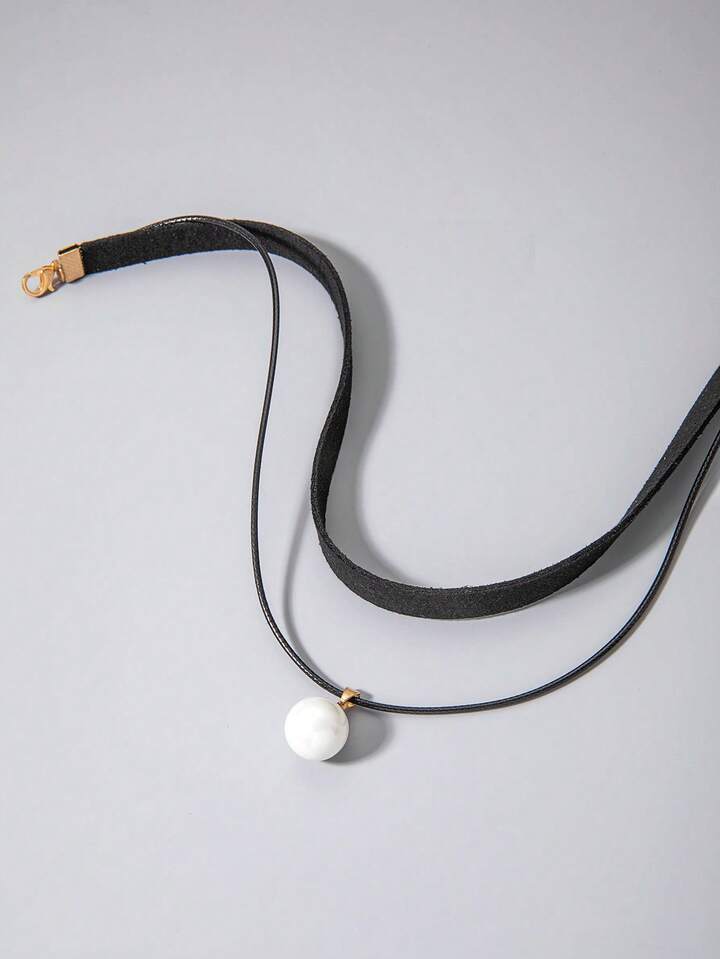 Goth Gargantilla en capas elegante con dije de perla sintética para mujer, decoración diaria, 1 pieza