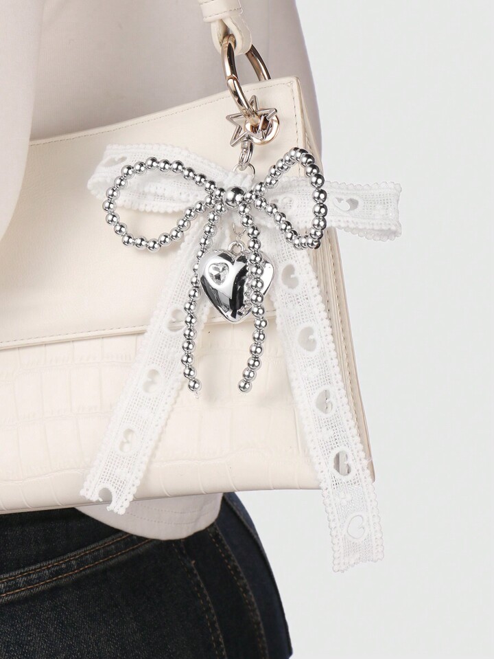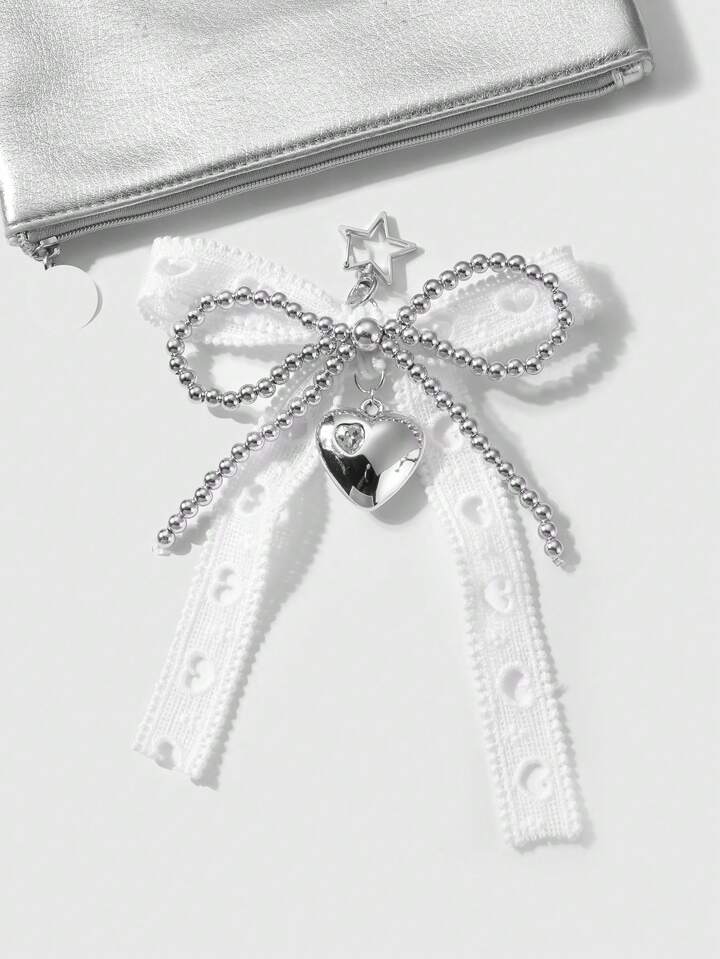 Goth 1 pieza Elegante y lujoso llavero de plata con corazón hueco, moño y piedras rhinestone, hecho a mano con cuentas - accesorio versátil para mujer, idea de regalo