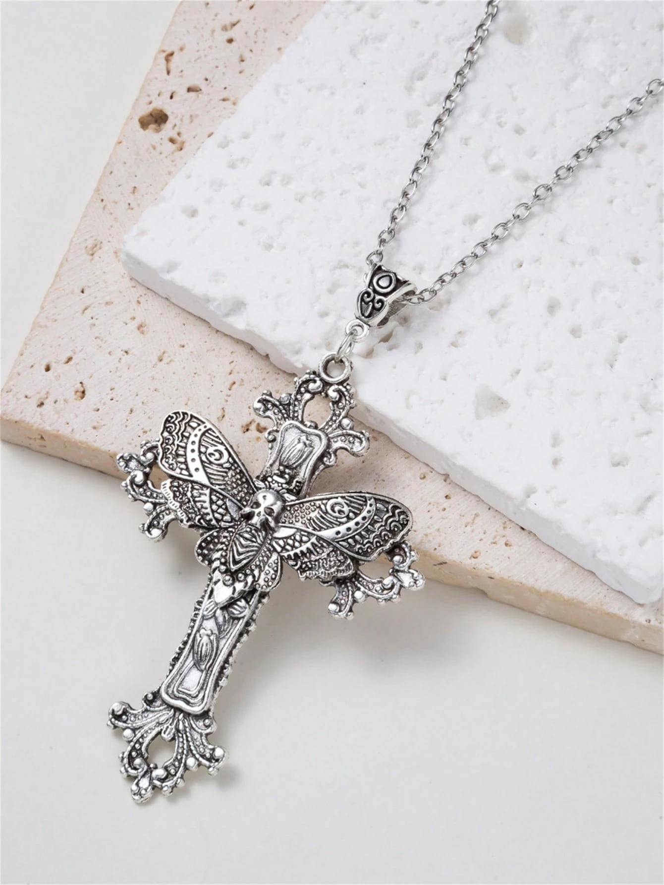 Goth 1 pieza Collar miedoso aleación de zinc cruzado & con diseño de cráneo para mujeres para decoración diaria