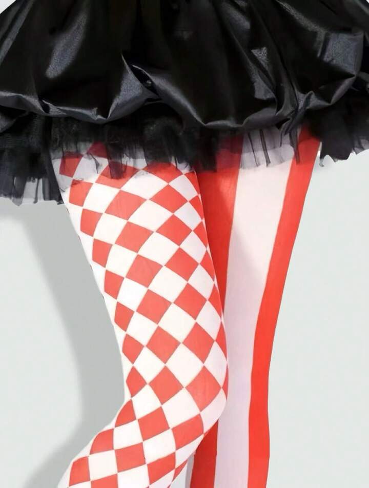 Goth 1 pieza Medias/Mallas/Leggings asimétricos y sexys de mujer de alta elasticidad a cuadros en blanco y negro