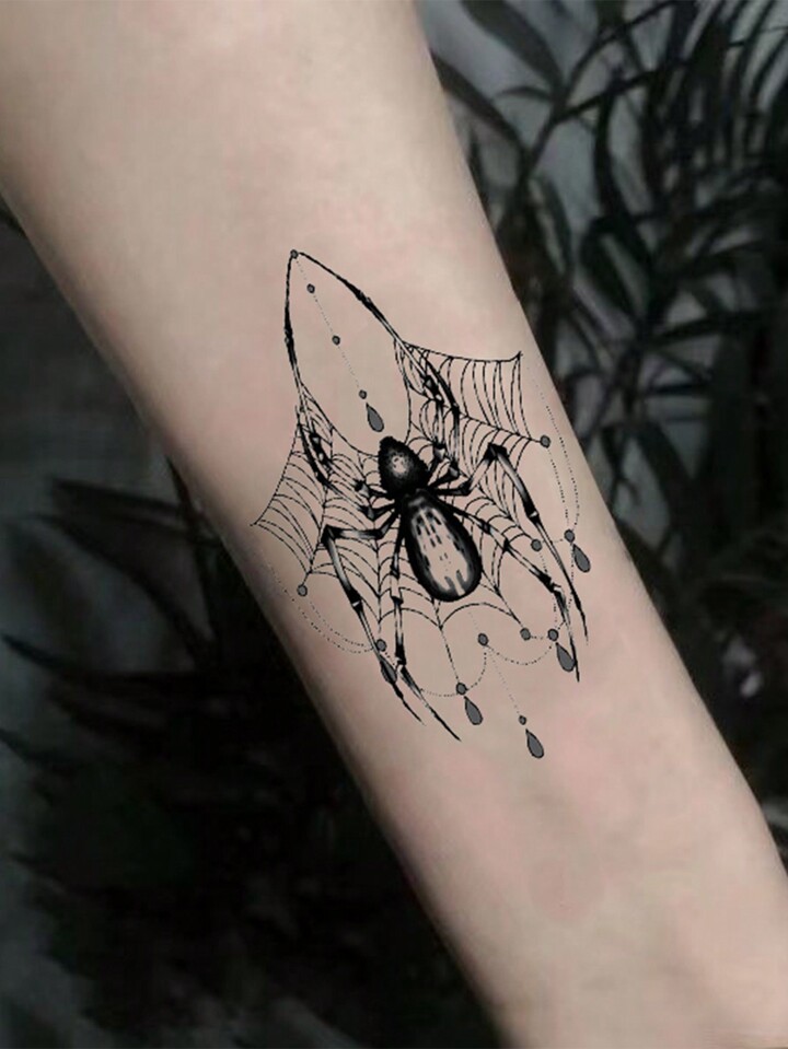 Goth 1 pieza Calcomanía de tatuaje impermeable y resistente al sudor en estilo minimalista de la cultura china moderna con diseño en 3D de Araña y Telaraña