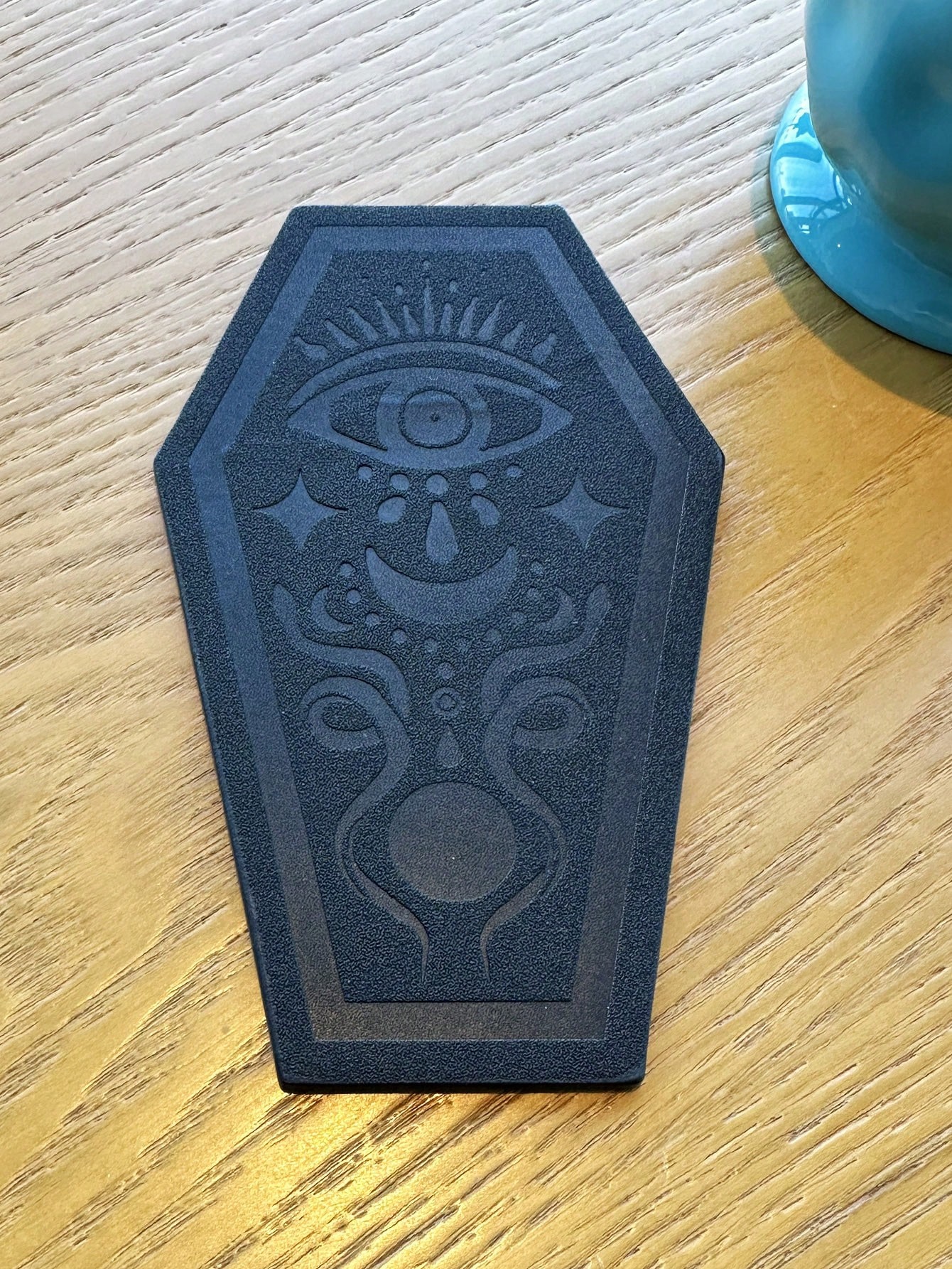 Goth 1 Pieza Posavasos En Forma De Ataúd Gris De Estilo Neutral Con Patrón De Ojo Oscuro Y Imágenes Sustitutas
