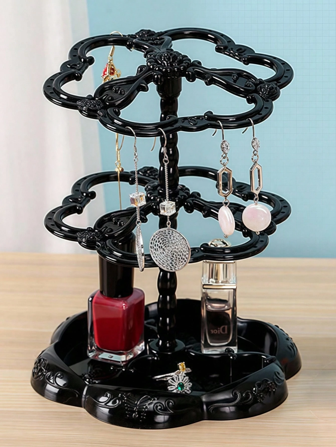 Goth 1 pieza Expositor giratorio de joyas de plástico, organizador de pendientes de color negro para collares, lazos para el cabello y accesorios con ganchos, decoración para el hogar