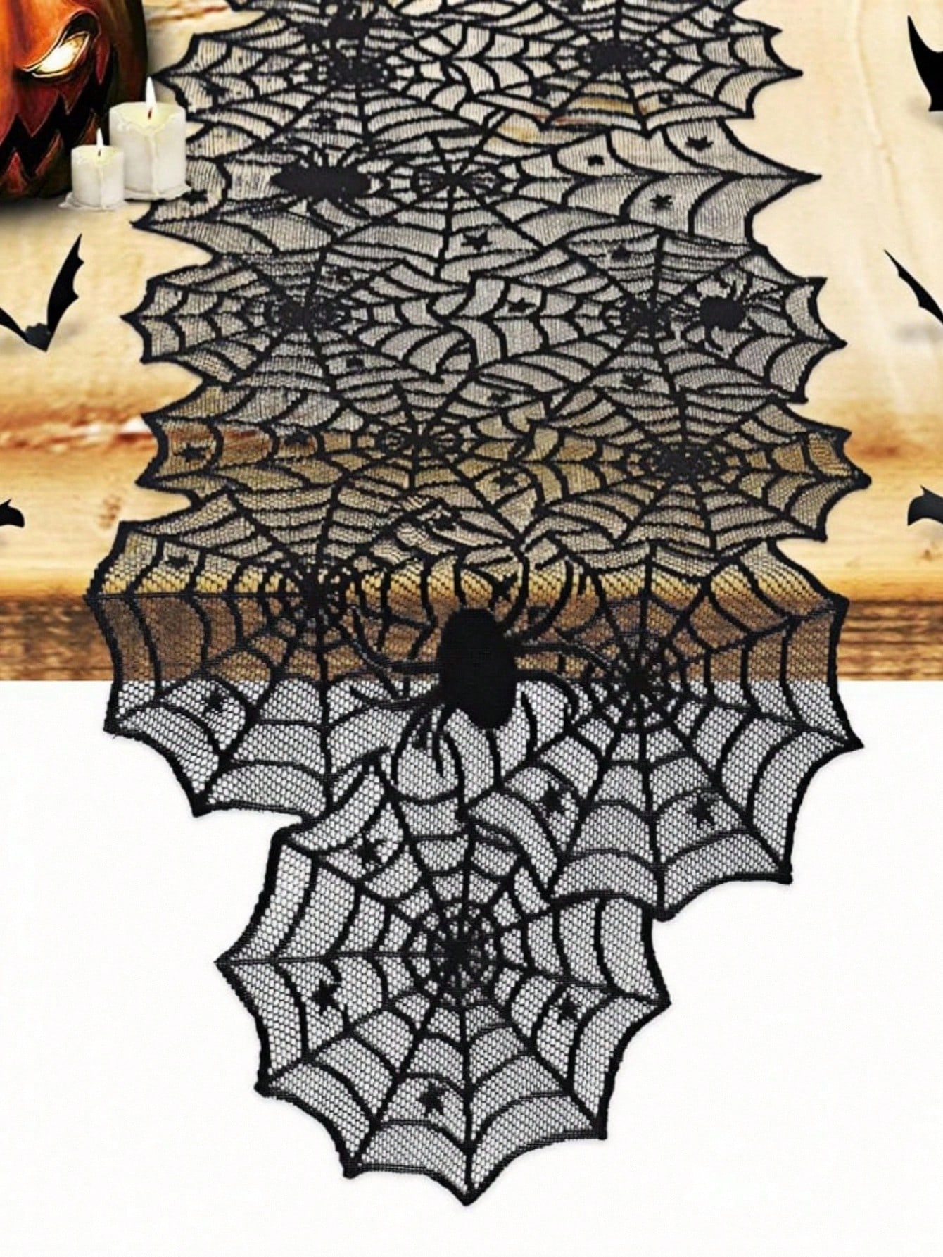Goth 1 pieza Camino de mesa con diseño de telaraña de Halloween - Mantel negro con telaraña espeluznante para fiestas de Halloween, cenas, temas de brujas, decoraciones góticas