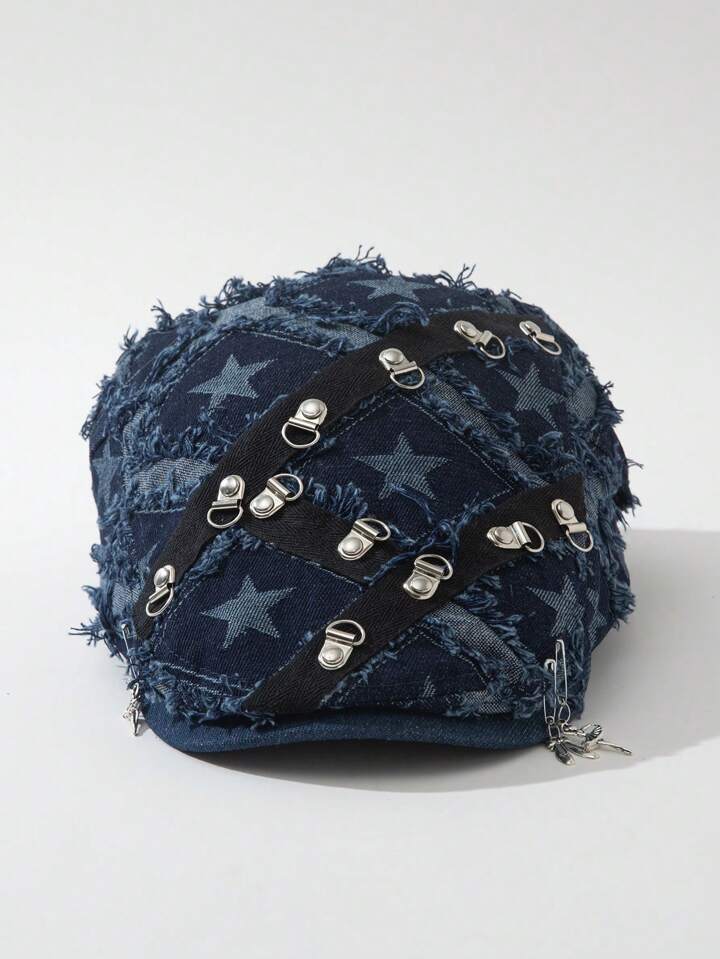 Goth 1 pieza Gorro boina con flecos en forma de estrella para mujer, adecuado para uso diario