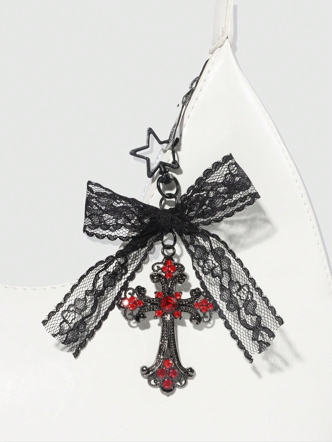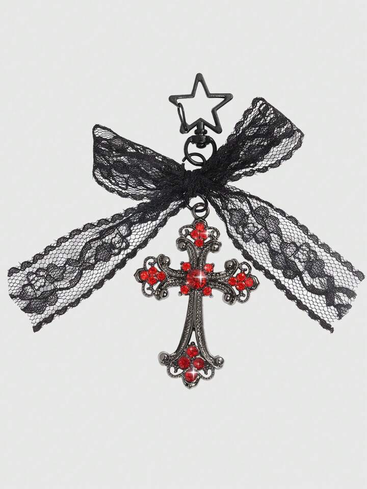 Goth 1 pieza Llavero con lazo y dije de cruz gótica en estilo Y2K