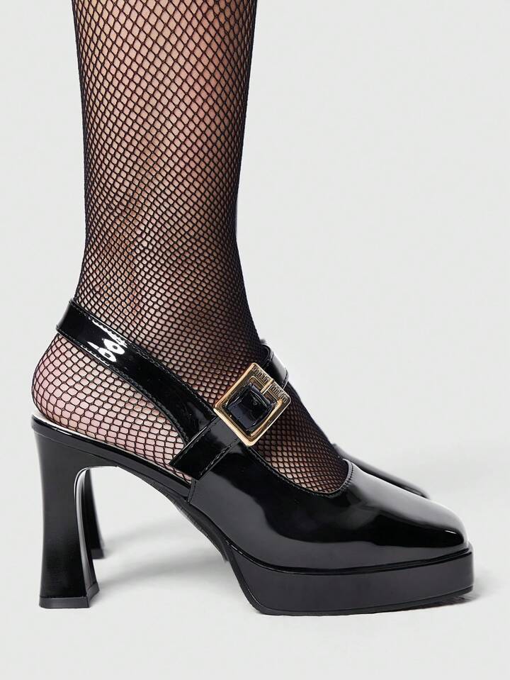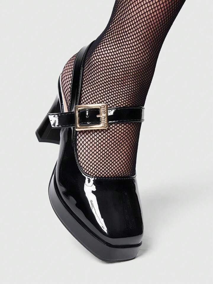 Goth Zapatos de tacón alto con punta cuadrada y correa en el empeine, estilo retro primavera 2024, para mujer. Zapatos de plataforma con tacón grueso, de piel patentada francesa e impermeables, para el Año Nuevo y vacaciones.
