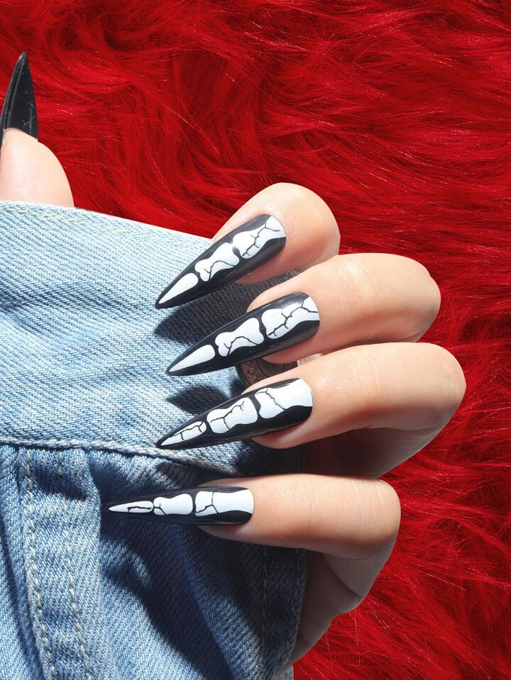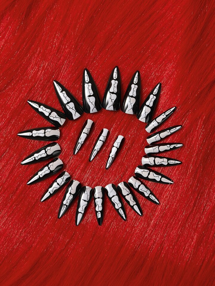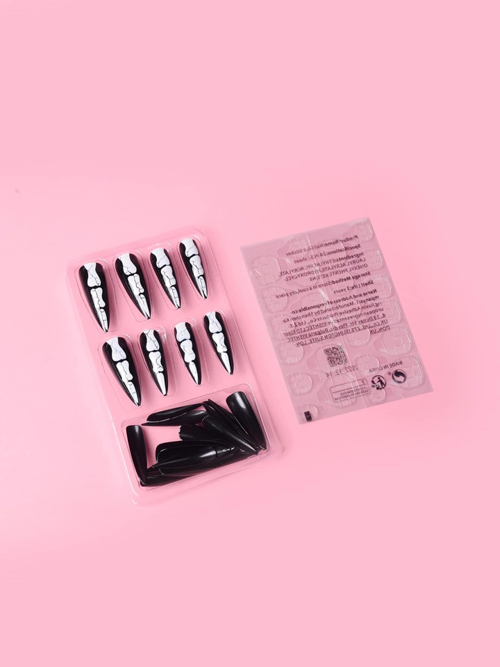 Goth 24 piezas largo estilete hueso Uña postiza & 1 hoja cinta