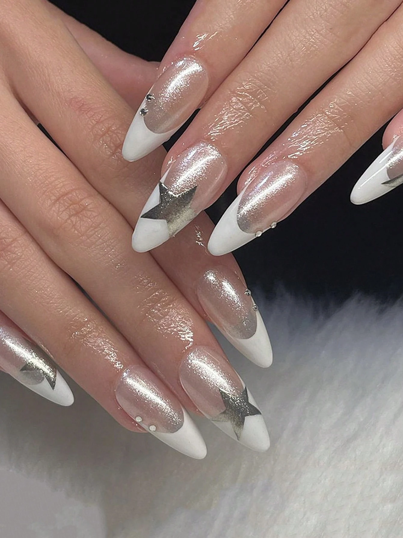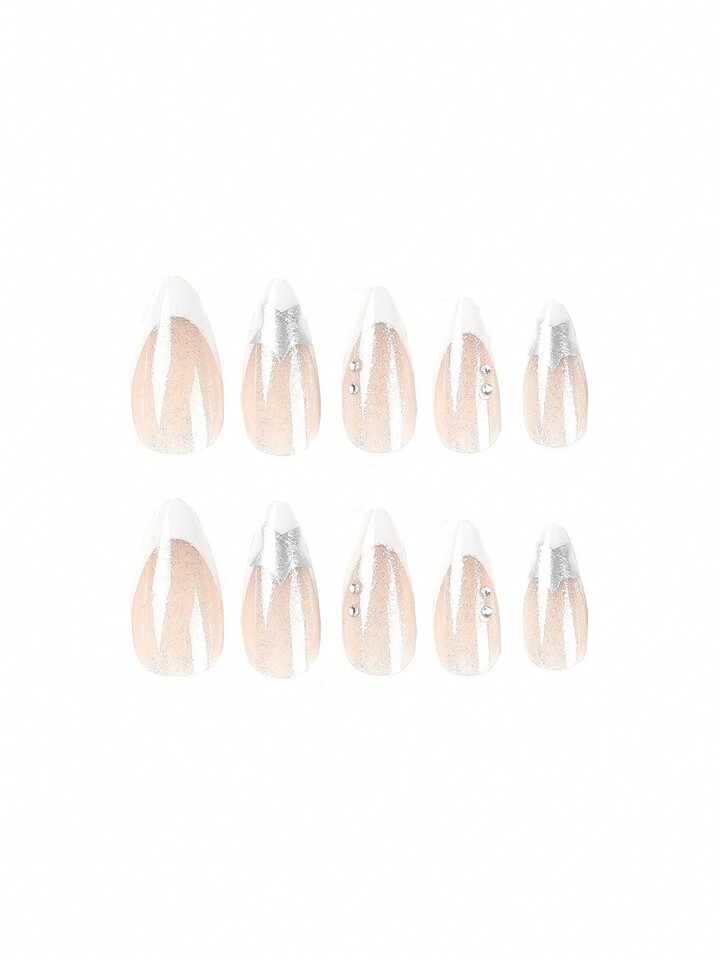 Goth 24 Piezas/set Uñas Postizas Diseñadas Con Estrellas De Cinco Puntas Y 1 Trozo De Cinta Adhesiva