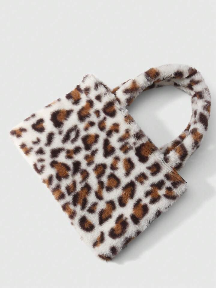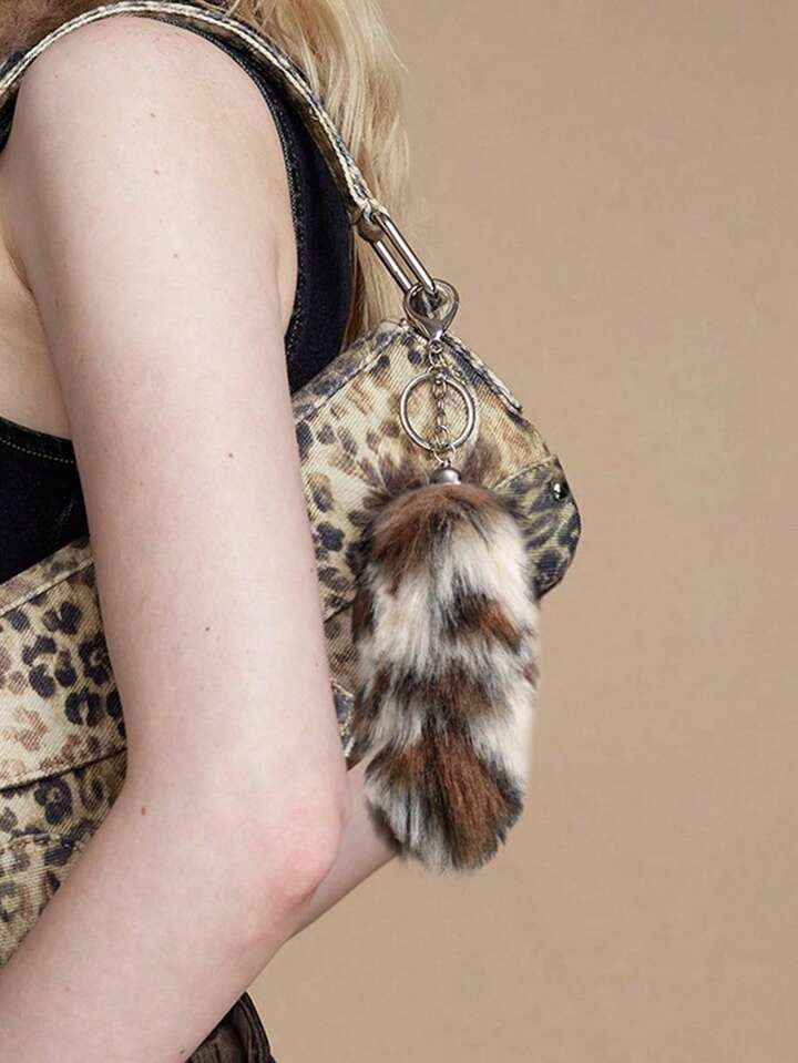 Goth Set de 2 piezas que incluye: 1) Bolso minimalista, casual y versátil con estilo retro y universitario, con estampado de leopardo o tigre de piel de conejo sintética, adecuado para uso diario y como regalo. 2) Llavero con cola de leopardo sintética esponjosa y mini animal, accesorio para bolso