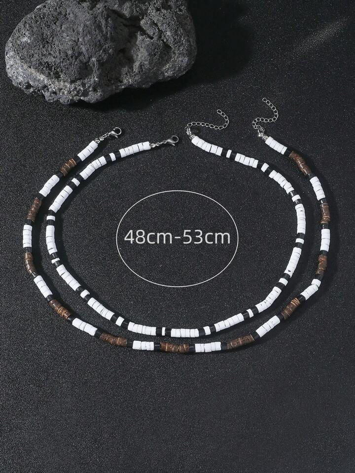 Goth 2 piezas/Set de collares de cuentas asimétricos de concha de coco natural vintage de moda para hombres