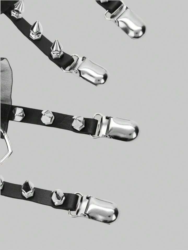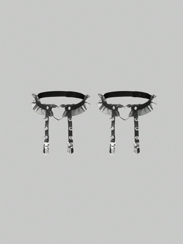 Goth Mujer 2 piezas Liguero a la cintura tachuela & con adorno de corazón de malla en contraste