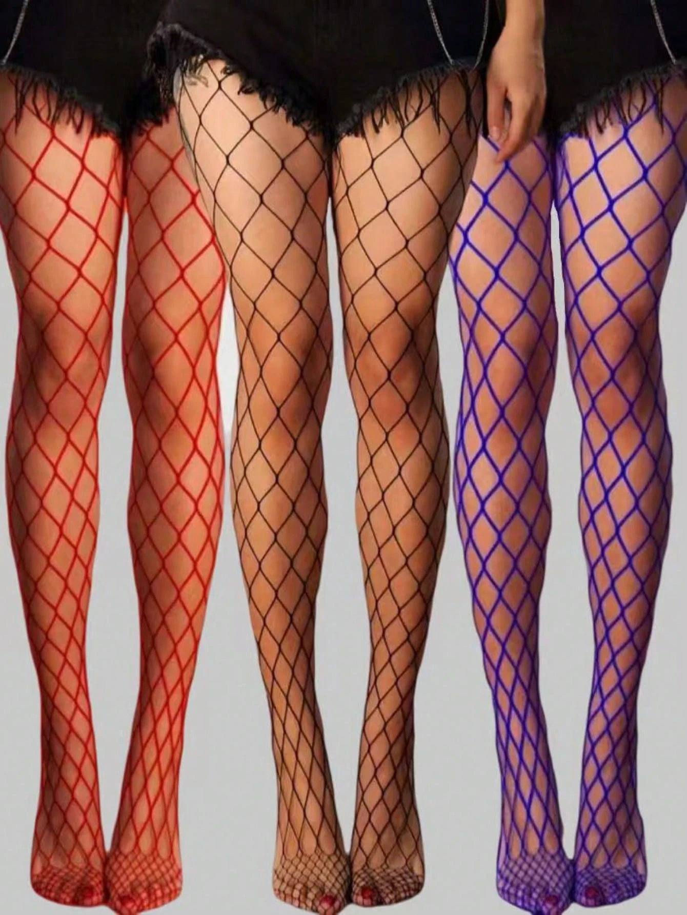 Goth (3 pares) Medias de red elásticas multicolor combinadas para mujeres - Pantimedias / Mallas / Leggings