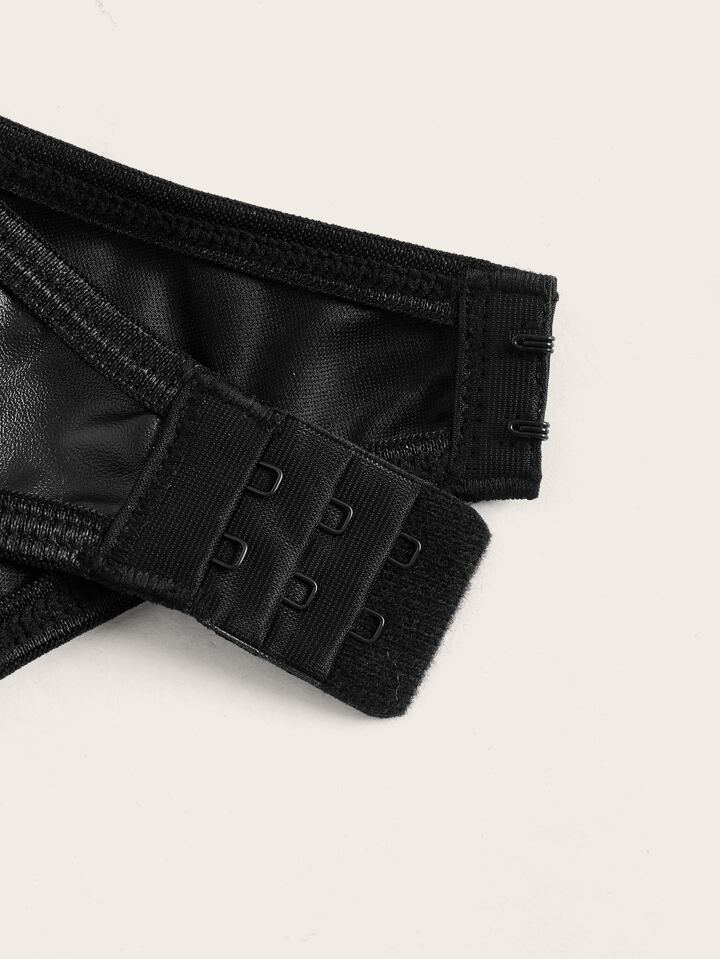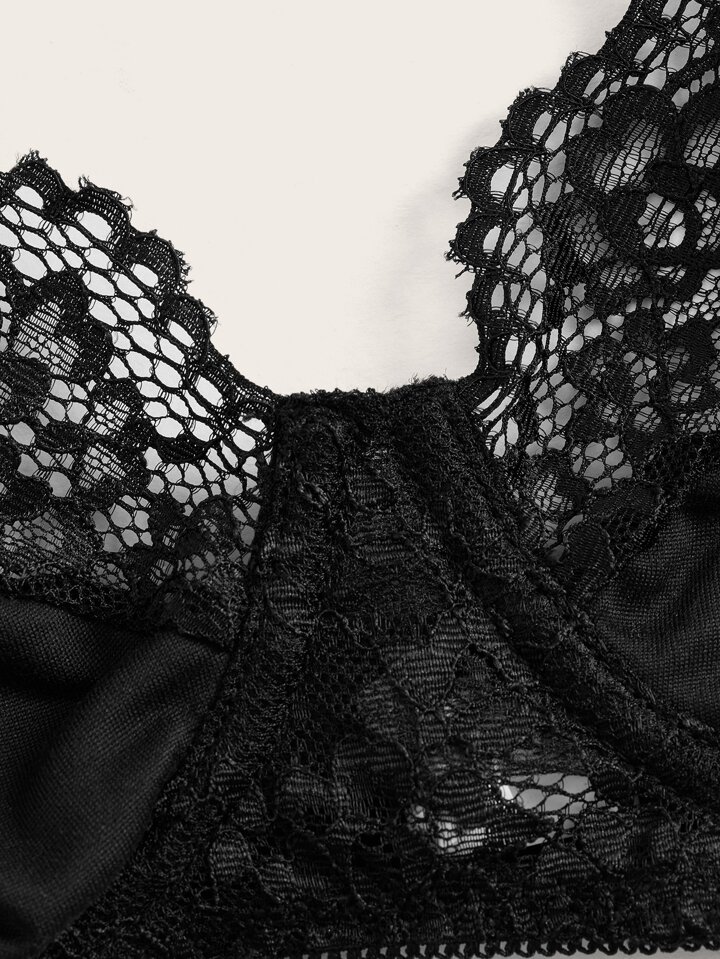 Goth 3 piezas Set de lencería con encaje floral con aro con liga