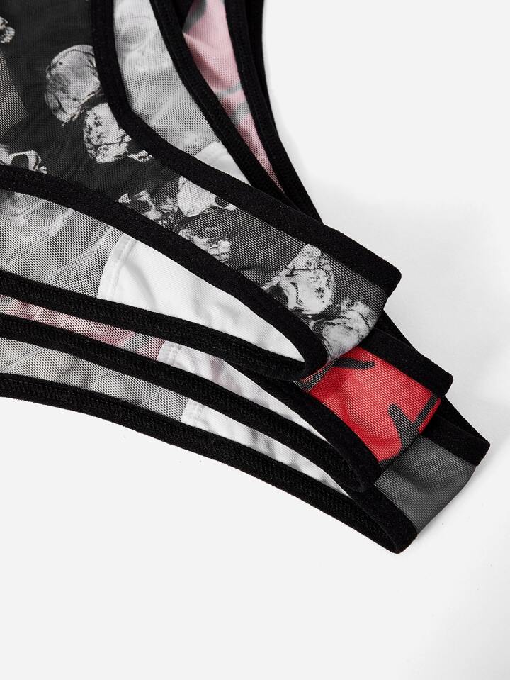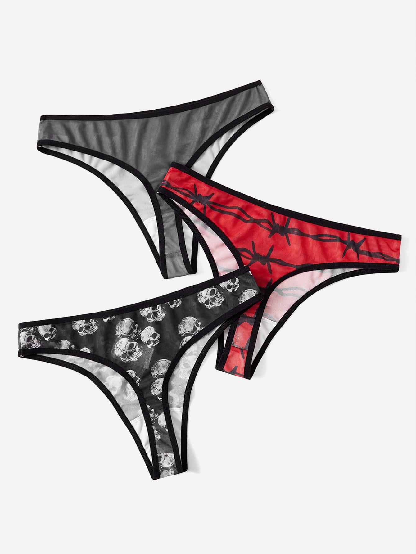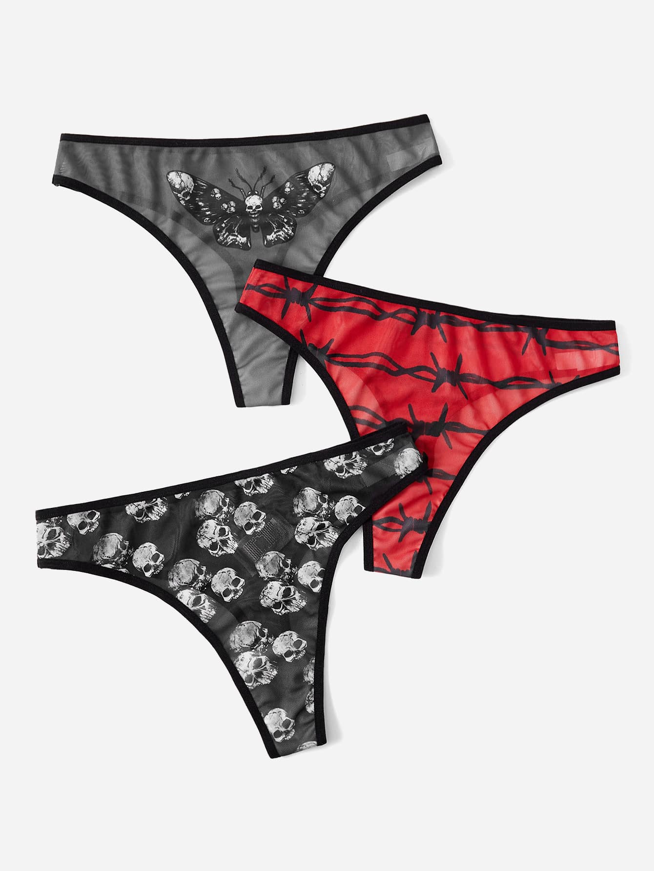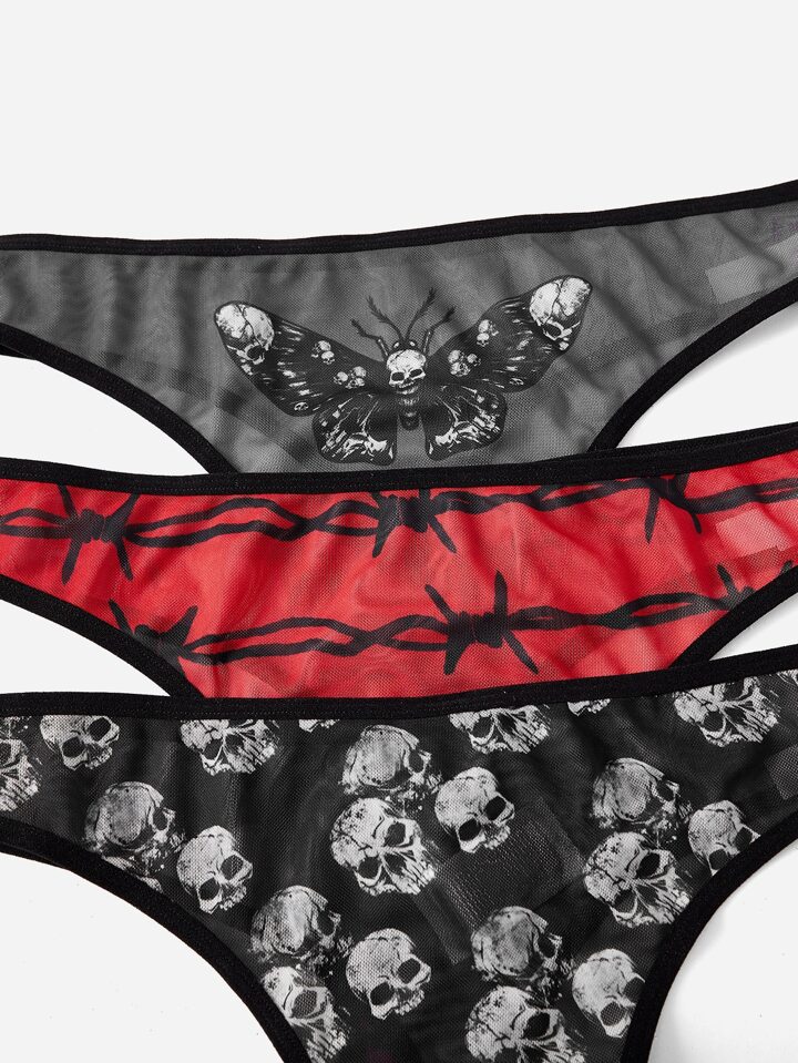 Goth 3 piezas Set bragas estampado de cráneo