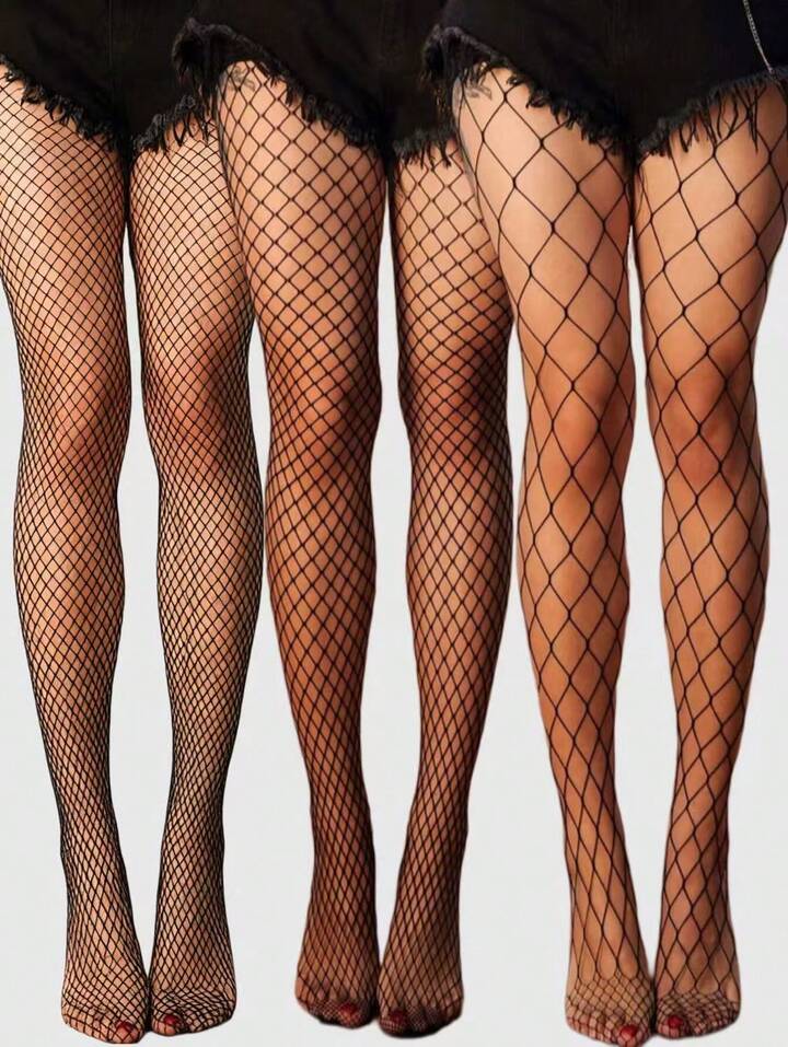 Goth 3 piezas Medias/Mallas/Leggings de red elástica de color púrpura, para mujer