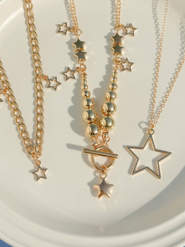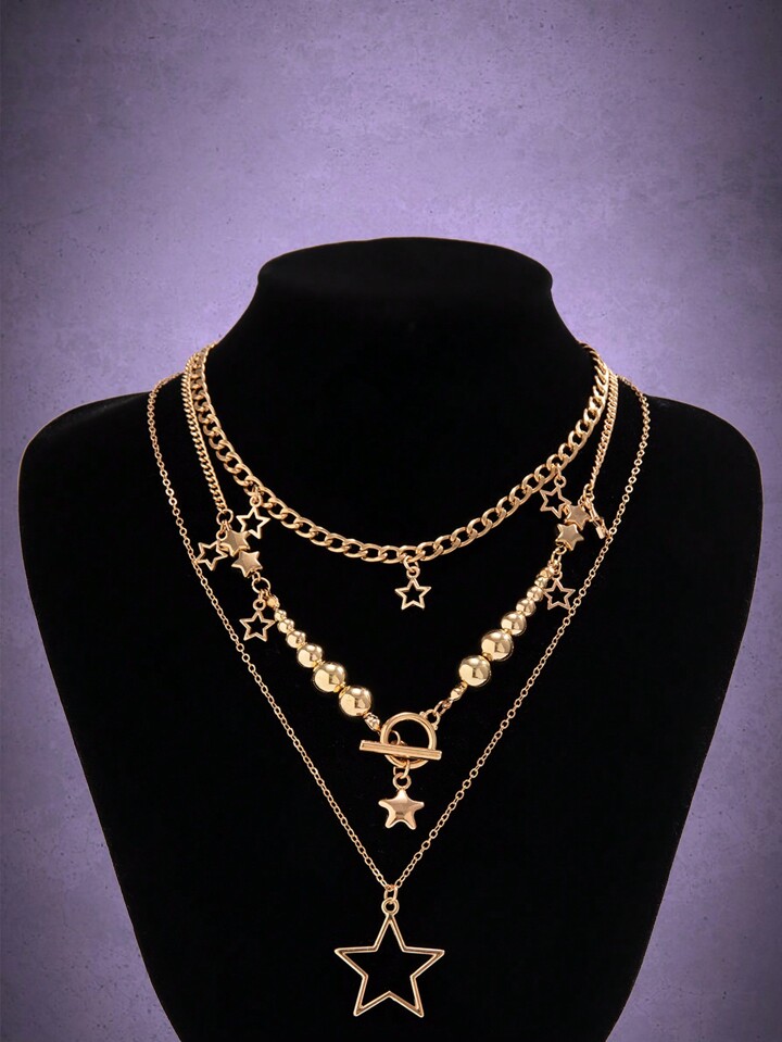 Goth 3 Piezas/set Conjunto De Collar De Cuentas Con Colgante De Estrella, Estilo Punk Elegante