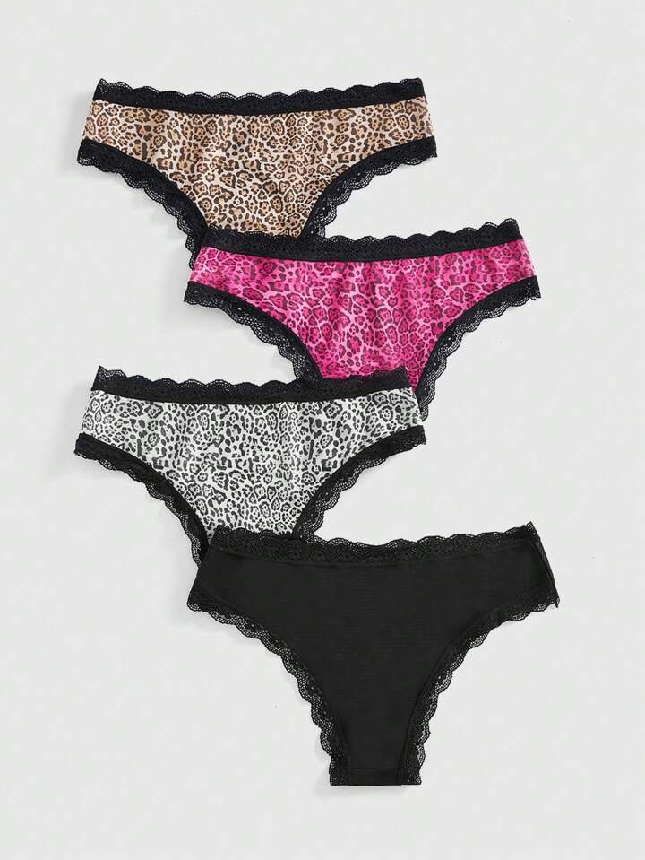 Goth Set de 4 piezas de bragas de mujer con estampado de leopardo, calavera y encaje de red