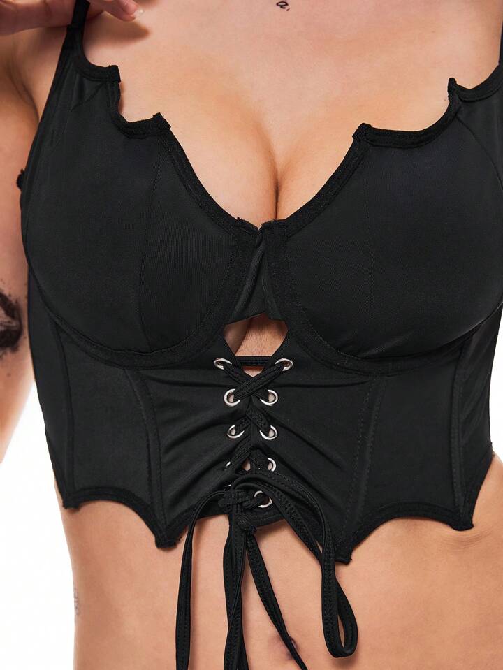 Goth Parte superior de bikini con corpiño tipo tirantes, estilo de corsé espina de pez, parte superior de traje de baño de mujer para el verano