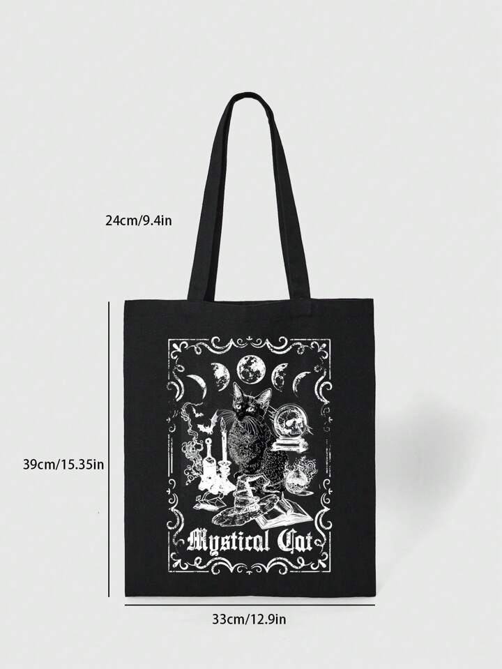 Goth Bolso de lona con gato mágico negro de Halloween, casual y sencillo para mujeres