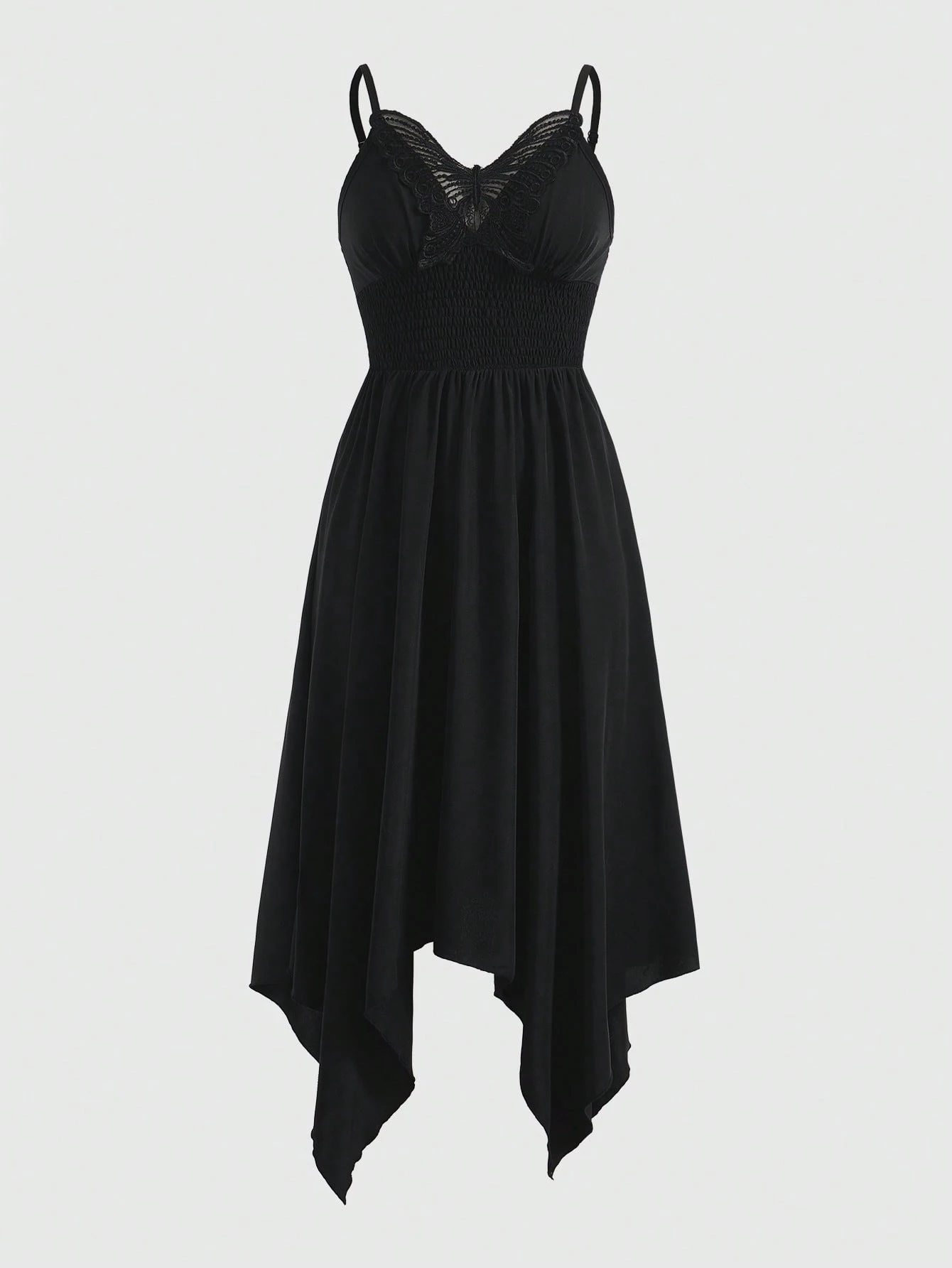 Goth Vestido de tirantes con mariposa aplique bajo asimétrico