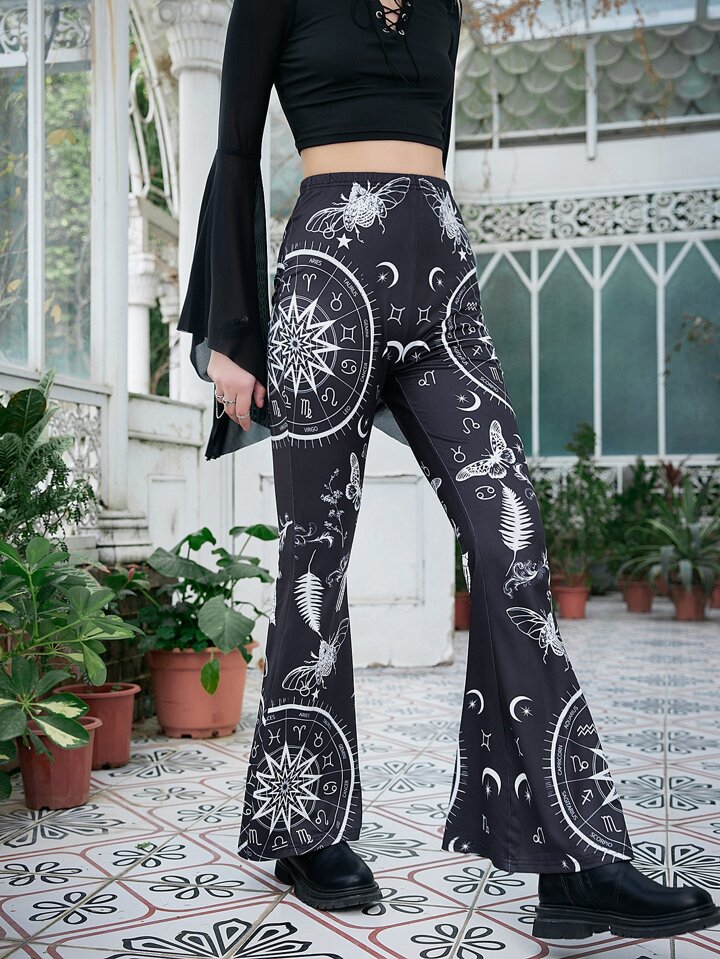 Goth Pantalones acampanados con mariposa y luna con estampado