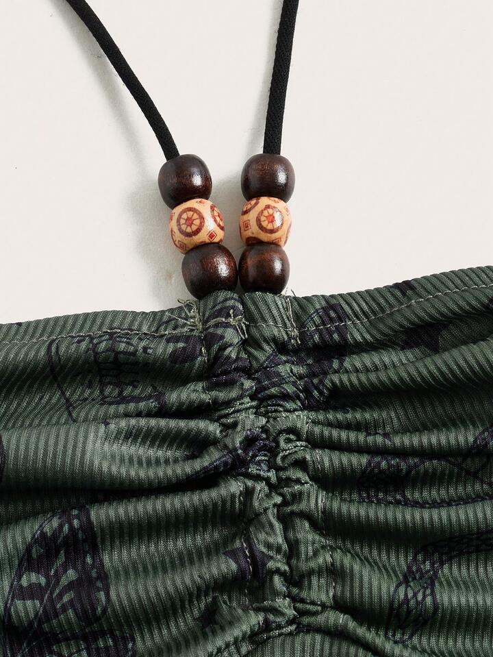 Goth Top halter con estampado de mariposa y cráneo fruncido