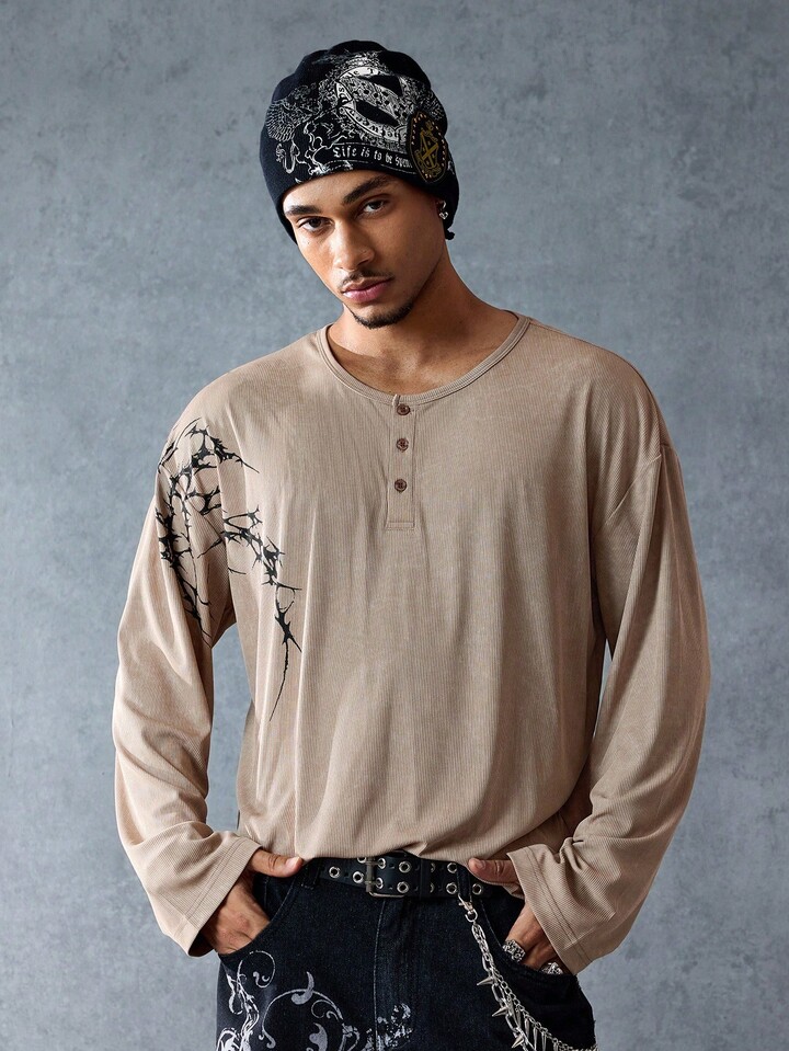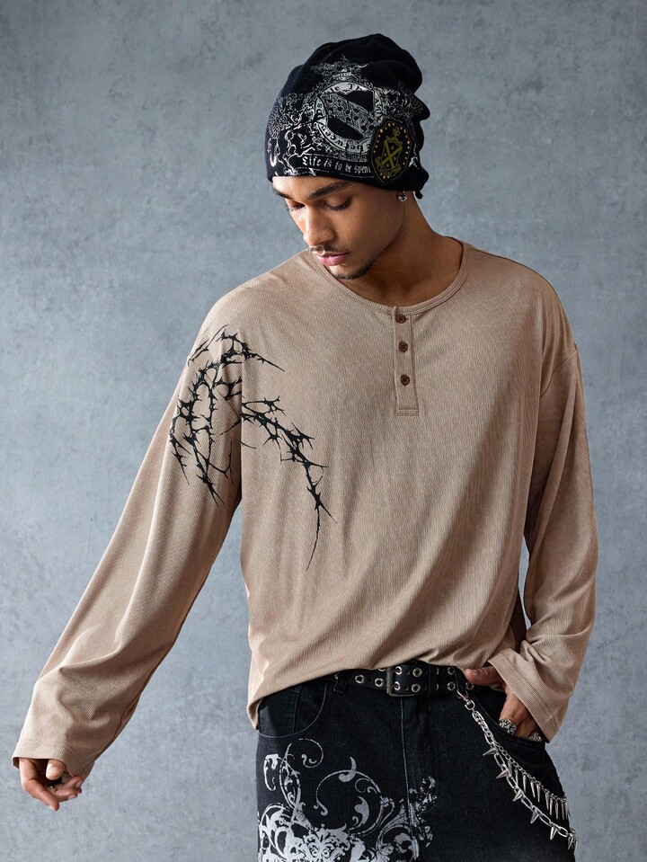 Goth Camiseta de manga larga de ajuste holgado y versátil para hombres