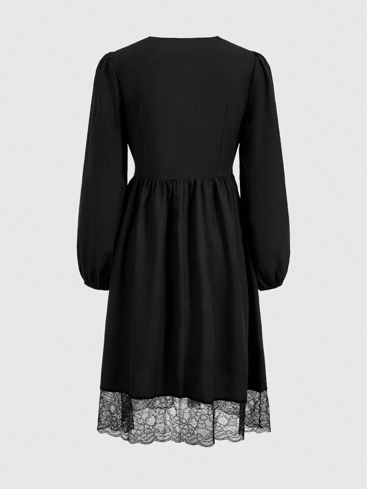 Goth Vestido con cinturón con encaje en contraste