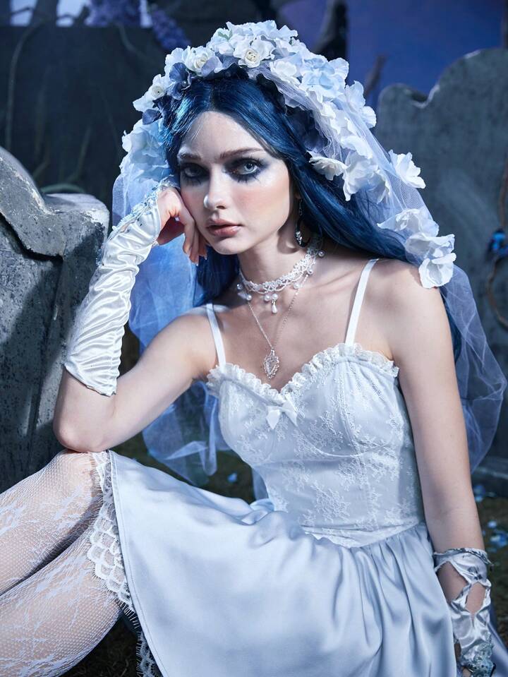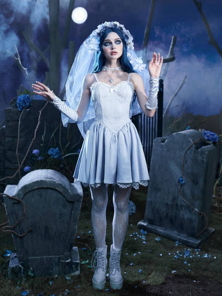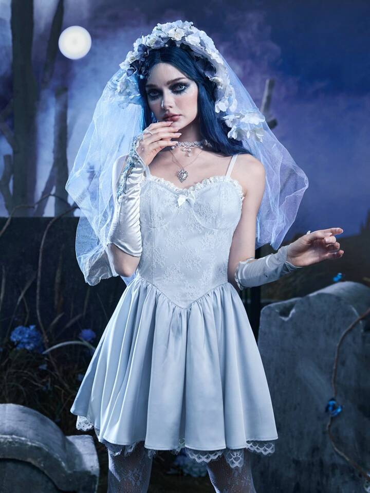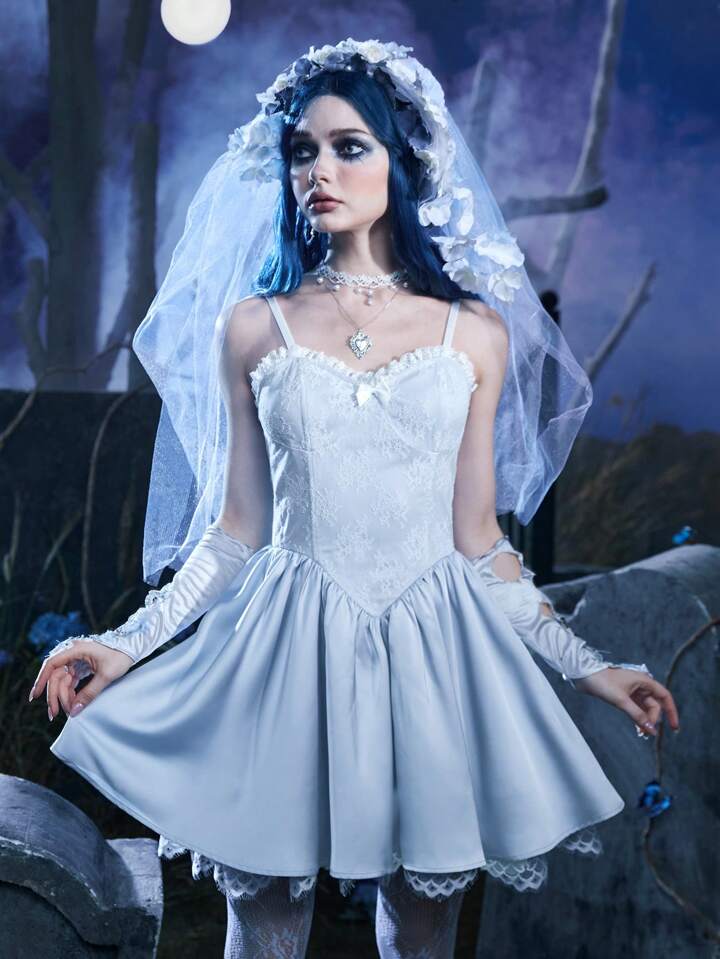 Goth Vestido de tirantes con encaje en contraste sin guantes