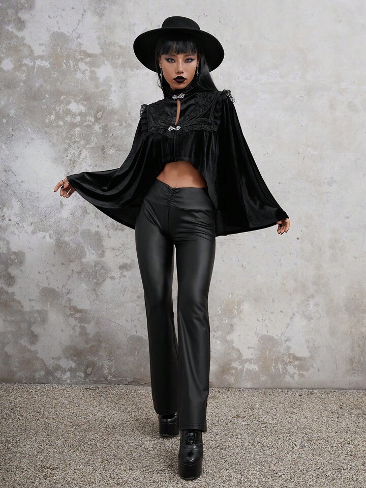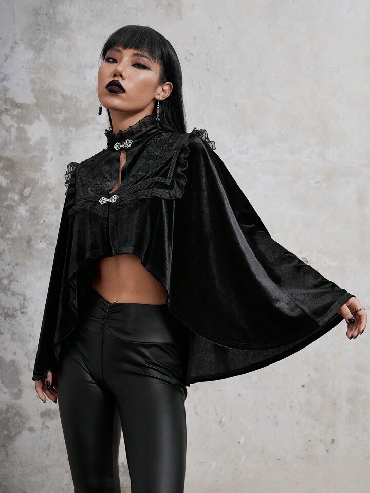 Goth Abrigo capa con encaje en contraste bajo irregular crop de terciopelo
