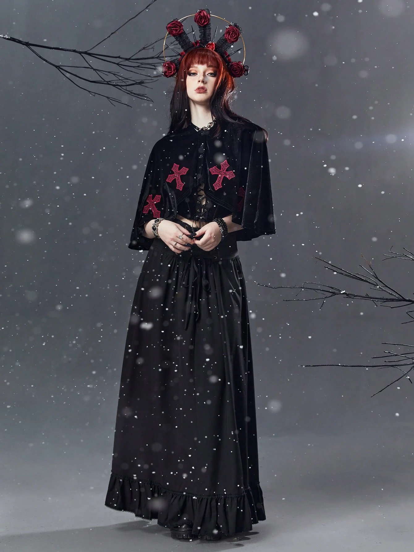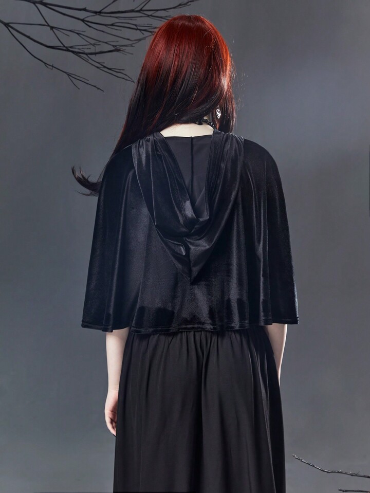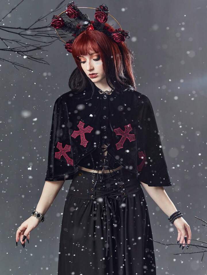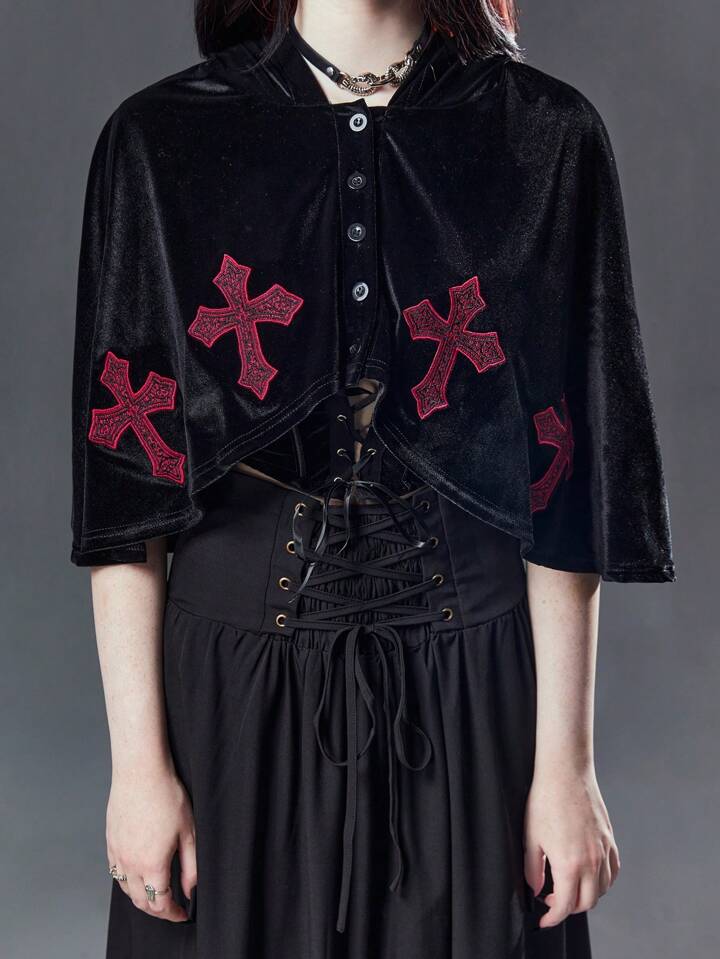 Goth Abrigo Con Manga De Murciélago Y Bordado Cruzado