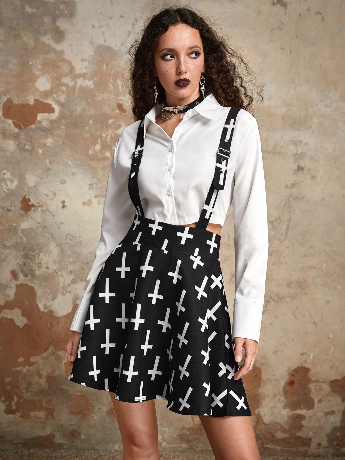 Goth Falda de tiras cruzado con estampado